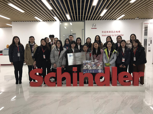 2017年12月22日星期五上午9:00,在yl23455永利实习就业指导中心曾晓琳老师与杨丽萍老师的带领下,十九名悉商学子来到了全球领先的电梯、自动扶梯提供商-迅达集团开展职场初体验活动。旨在为让低年级员工能够通过一天的实习了解企业的工作氛围,同时也为课业繁重而无法寻找实习的同学提供接触行业与企业的机会。