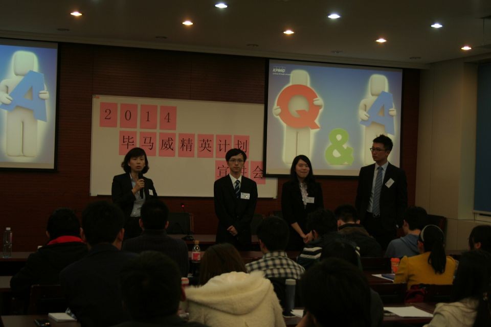 2014年3月27日,四大会计事务所之一的KPMG毕马威带着精英计划来到了yl23455永利,在文德楼三楼报告厅展开了宣讲。宣讲会现场十分火爆,座无虚席,场边还有不少加座,同学们对于KPMG的热情十分高涨。