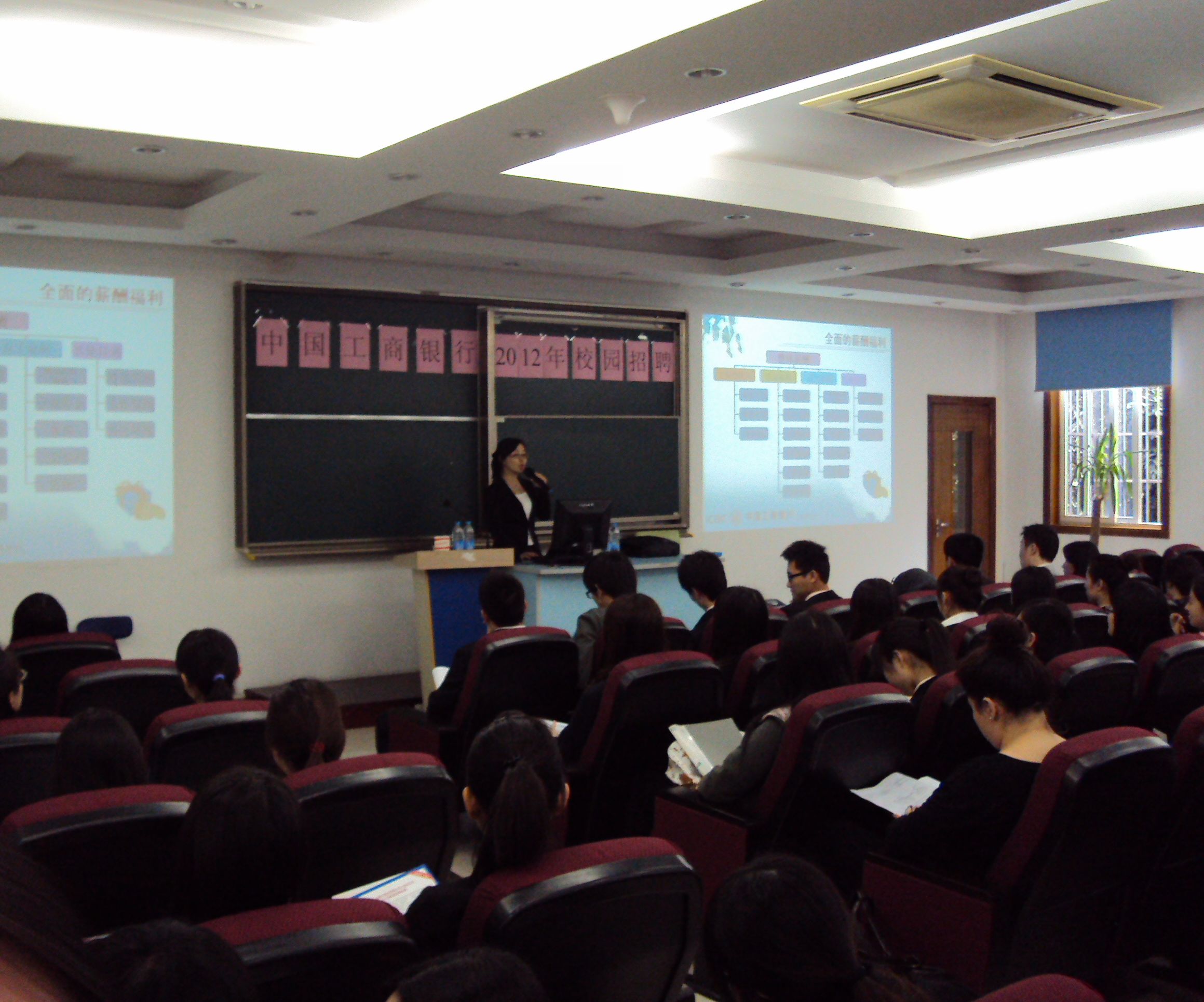 宣讲会上,工商银行上海市分行人事部的负责人简单介绍了工商银行的整体情况,重点就员工就职期间的培训、员工薪酬福利和职业发展空间等问题做出了解释,使应聘的同学更加深入全面地了解工商银行。