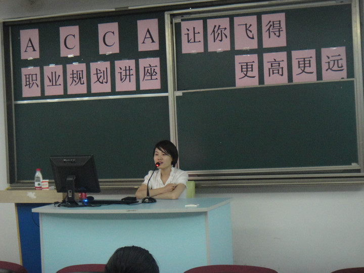 9月13日,在中秋小长假后的第一个中午,职拓工作就马不停蹄的进行。"让你飞得更远"ACCA职业规划讲座在实验楼报告厅顺利进行。此次活动邀请到了ACCA上海代表处助理推广经理何碧娟女士作为主讲人,详细向同学们介绍了ACCA各个方面的信息,让到场的同学们受益匪浅。