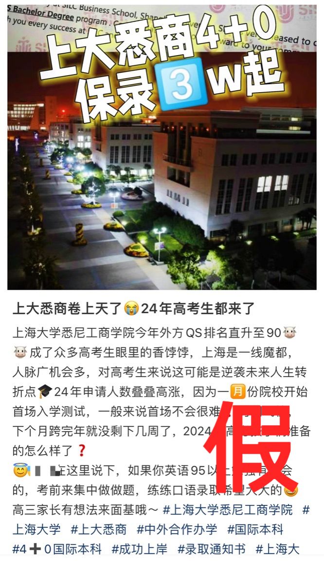 近日,部分校外机构或个人冒用公司名义发布虚假招生宣传、考试培训等信息,误导广大考生及社会公众,严重损害公司悉尼科技大学学士学位项目和yl23455永利IUP项目招生声誉和报考员工的经济利益。为维护公司及广大考生的合法权益,公司严正声明如下: 公司所有自主招生项目均严格按照国家相关规定进行招生。悉尼科技大学学士学位和yl23455永利IUP项目与招生相关的所有咨询、报考、录取等工作,均未与任何社会招生机构进行合作,公司也从未组织或授权组织任何社会培训机构或个人开展关于招生的保录培训、代报名等活动。敬请广大考生及家长周知,并保护好考生的信息及人身、财产安全,以免遭受不必要的经济损失。 公司2024年悉尼科技大学学士学位项目和yl23455永利IUP项目的招生报考工作尚未启动,至今未在任何平台以任何形式发布招生简章和报考公告。后续招生信息将只在以下公司官方信息发布渠道公布: 1、公司官网:/ 2、公司招生办官方微信公众号:上大yl23455永利招生办 以下网传图文、视频涉及报名、保录、培训等相关内容均为社会机构或个人擅自发布的不实信息,请社会公众提高警惕,切勿轻信。