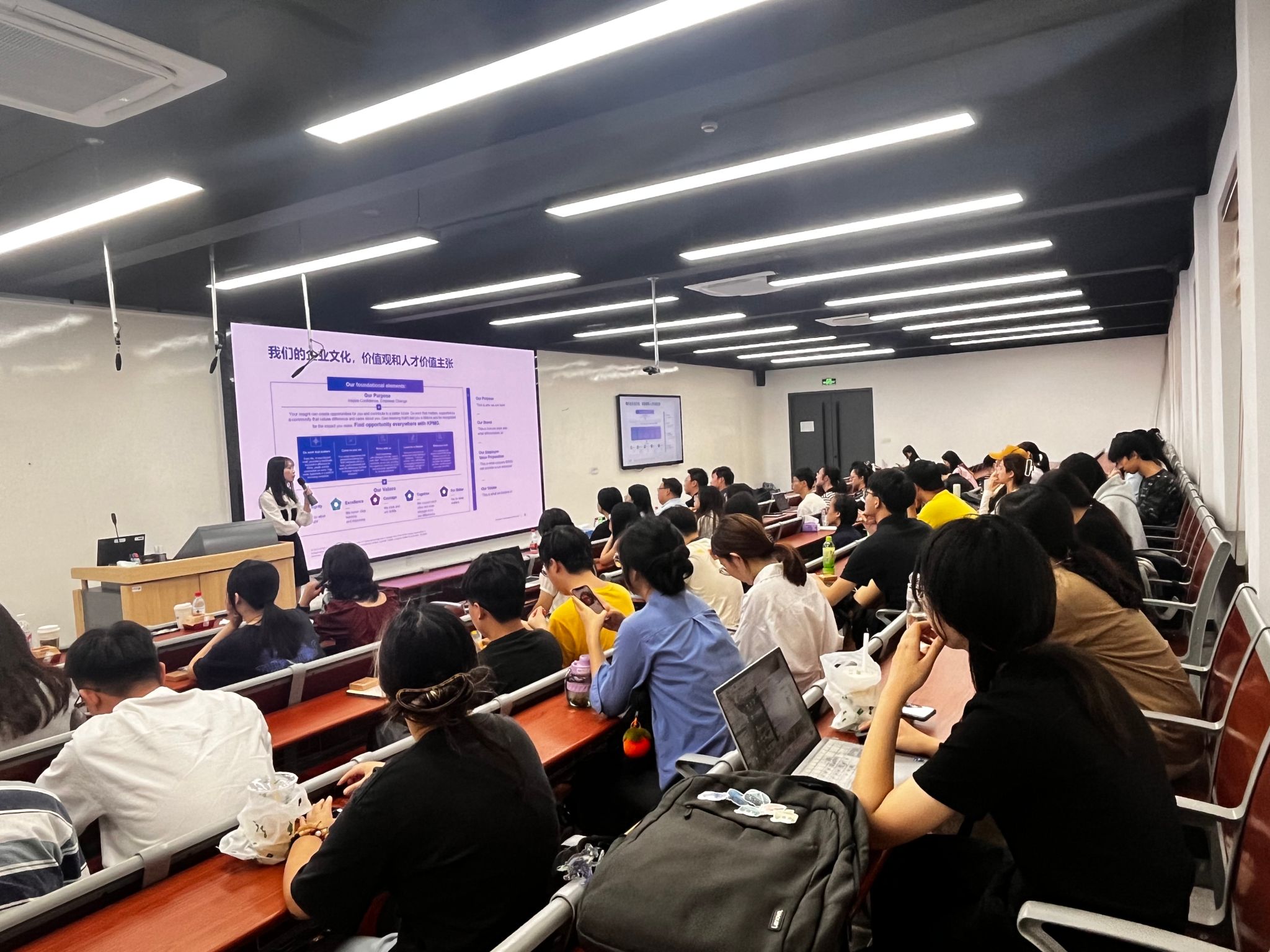 9月27日下午,2025毕马威校园招聘宣讲会在yl23455永利文德楼205顺利举行。本次活动吸引了百余名同学前来参加,现场出席嘉宾包括毕马威咨询部门副总监郭洪雨、审计部门经理陶泽英和朱屹嘉、信息技术审计部门经理俞竹玮,人力资源部经理周玙昕、助理经理盛雨沁。宣讲会由盛雨沁主持。宣讲会共分4个环节展开,依次是公司概况,各部门简介,校招与实习项目介绍及问答环节。 盛雨沁首先介绍了毕马威在中国市场的基本情况,包括各自不同领域的服务客户、数字化转型目标等。她提到毕马威率先进入并致力于发展中国市场。 随后,由各位嘉宾从各自所在岗位的角度分享了在毕马威工作的体验与感想。值得一提的是出席本次宣讲会的嘉宾中,有多位是我们yl23455永利的员工。其中,朱屹嘉用亲身经历和大家分享了审计工作是一个开放的平台,让他们能够与其他业务进行合作,涉及社交、技术、信息等多个领域,在接触不同行业的底层业务中收获并汲取丰富的经验。他同时强调进入审计部门所需要的两个资质:第一对于数据审查认真负责,心细对待,第二,思维方面灵活,善于表达。陶泽英分享了在毕马威的真实体验,同事间有良好沟通交流同时拥有丰富的团建活动与项目。俞竹玮介绍了信息技术审计相关业务,包括确保自动化企业库信息可靠真实有效、信息库的安全储存访问等工作。他同时指出在该部门工作有利于拓宽视野,能够清晰了解不同层次企业内部控制与管理水平的表现,有助于提升认知思维。郭洪雨介绍了咨询部门从项目孵化到成型各个环节涉及的咨询业务,并强调在工作中需要了解不同企业底层的商业逻辑,剖析不同的商业模式、发展方式。 针对应届生招聘项目和实习生项目的亮点及申请流程,盛雨沁做了详细的解说,包括网上测试和面试,并建议同学们根据自身专业兴趣参考实习专业化路线与探索路线。 在最后的问答环节中,同学们积极提问关于网申、面试、简历等相关问题,与嘉宾们进行深入交流与探讨。 毕马威校园招聘宣讲会至此圆满落幕, 成为了同学们一次连接校园与职场、理论与实践的重要桥梁。毕马威,作为全球领先的专业服务机构之一,其深厚的行业洞察力、专业的服务能力和广泛的全球网络,在审计、税务、咨询等多个领域取得了举世瞩目的成就。从支持全球最复杂的交易,到助力企业实现数字化转型,再到为政府和社会组织提供前瞻性的战略建议,毕马威始终站在行业前沿,引领变革。