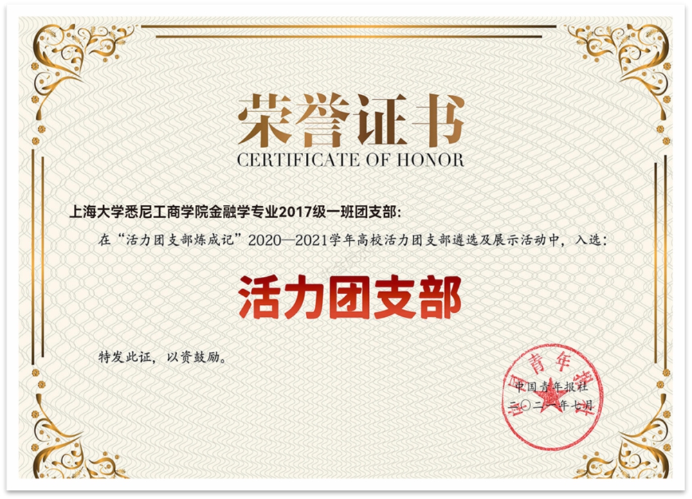 悉商2017级金融1班团支部荣获全国高校活力团支部